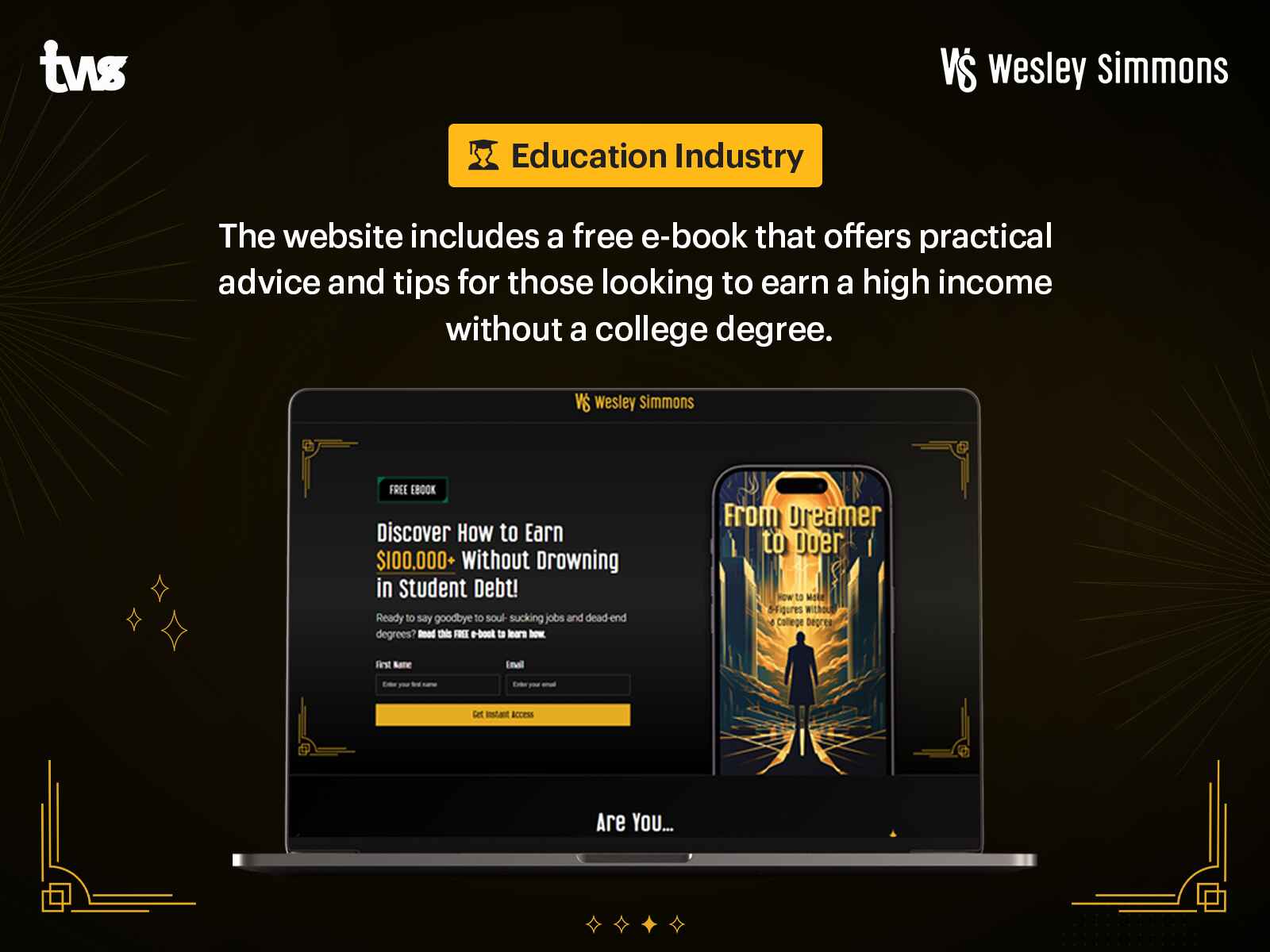 The website includes a free e-book that offers practical advice and tips for those looking to earn a high income without a college degree.